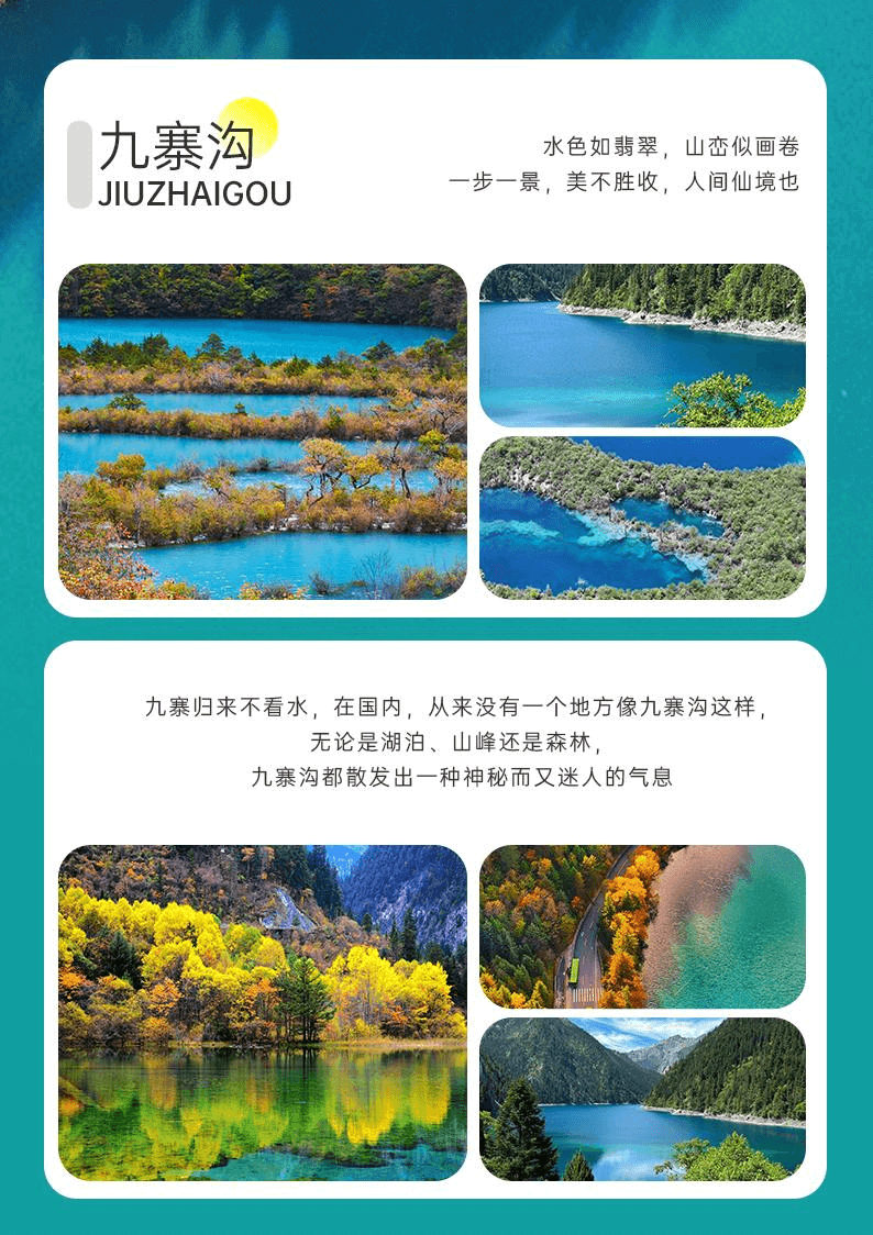 位于四川省阿壩藏族羌族自治州九寨溝縣漳扎鎮(zhèn),是白水溝上游白河的支溝,以有九個藏族村寨而得名。九寨溝海拔在 2000 米以上,遍布原始森林,溝內(nèi)分布 108 個湖泊。九寨溝四季景色迷人。動植物資源豐富,種類繁多,原始森林遍布,棲息著大熊貓等十多種稀有和珍貴野生動物。遠(yuǎn)望雪峰林立,高聳云天,終年白雪皚皚, 加上藏家木樓、晾架經(jīng)幡、棧橋、磨房、傳統(tǒng)習(xí)俗及神話傳說構(gòu)成的人文景觀,被譽為“美麗的童話世界”。九寨溝地處岷山山脈南段尕爾納峰北麓,是長江水系嘉陵江源頭的一條支溝,也是青藏高原向四川盆地過渡的地帶,地質(zhì)結(jié)構(gòu)復(fù)雜。這里高差懸殊、氣候多樣、山明水秀。 九寨溝主溝呈“Y”字形,總長 50 余公里。溝中分布有多處湖泊、瀑布群和鈣華灘流等。水是九寨溝景觀的主角。碧綠晶瑩的溪水好似項鏈般穿插于森林與淺灘之間。原始森林覆蓋了九寨溝一半以上的面積。林中植物種類繁多,現(xiàn)有天然森林近 3 萬公頃,植物 2000 余種。多種野生動物繁衍棲息于此,其中包括脊椎動物 170 種、鳥類 141 種,屬國家保護的有 17 種。林地上積滿厚厚的苔蘚,散落著鳥獸的羽毛,充滿原始森林的風(fēng)貌,使人仿佛置身于美妙的世外天地。?