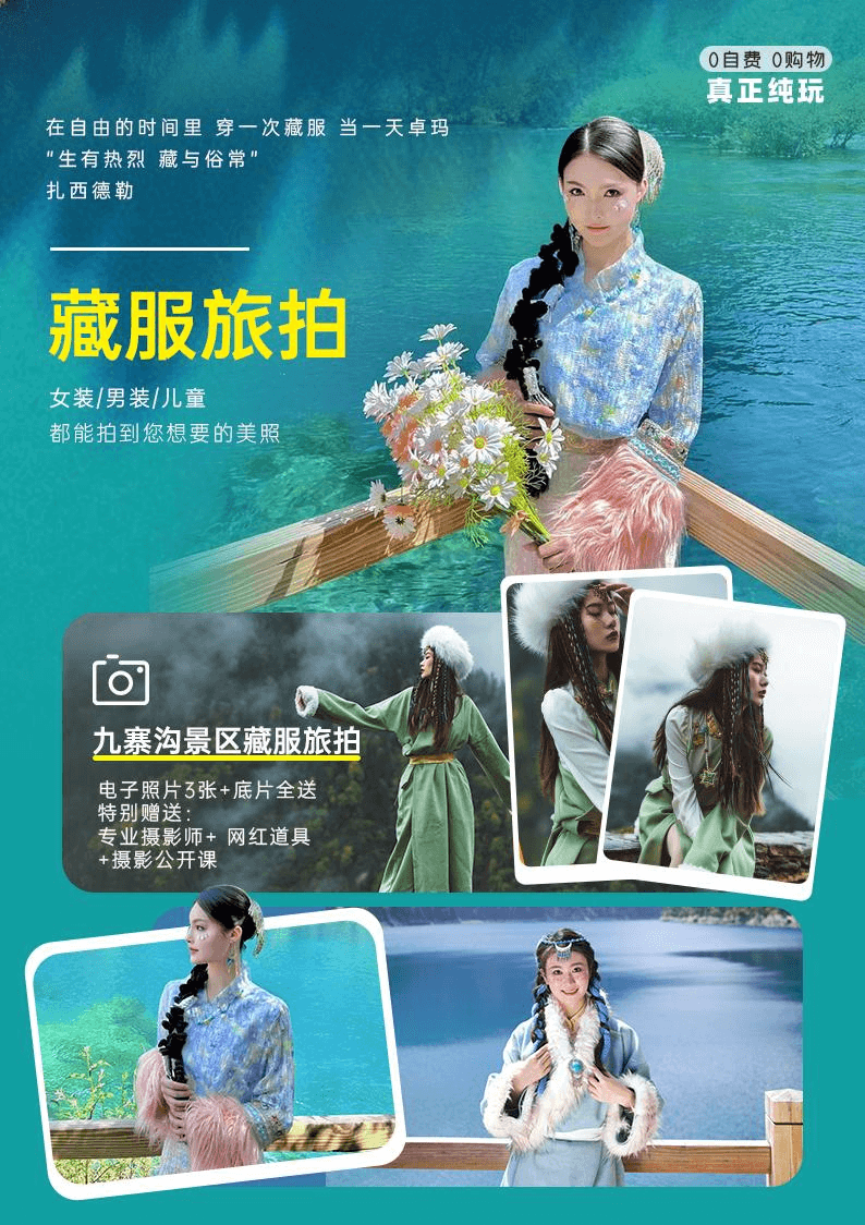 2:獨家旅拍:贈送九寨景區(qū)藏服旅拍精修電子照片 3 張+底片全送;