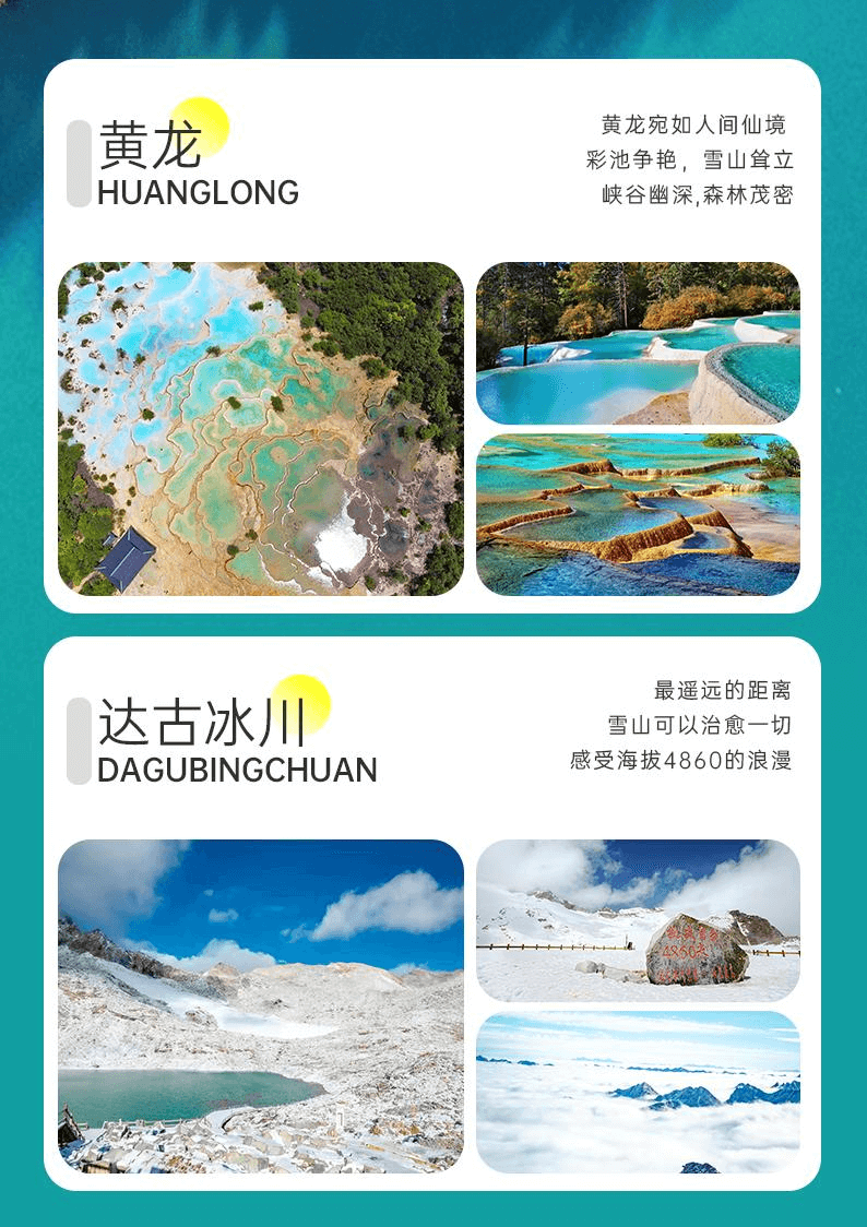 14:00-18:00 錯峰游覽【黃龍風(fēng)景區(qū)】(門票淡季 60 元,旺季 170 元。索道上行 80,下行 40。觀光車 20 元。一般游覽方式為坐上行索道+乘坐觀光車,然后步行下山游覽。景區(qū)相關(guān)費用不含敬請自理)?
