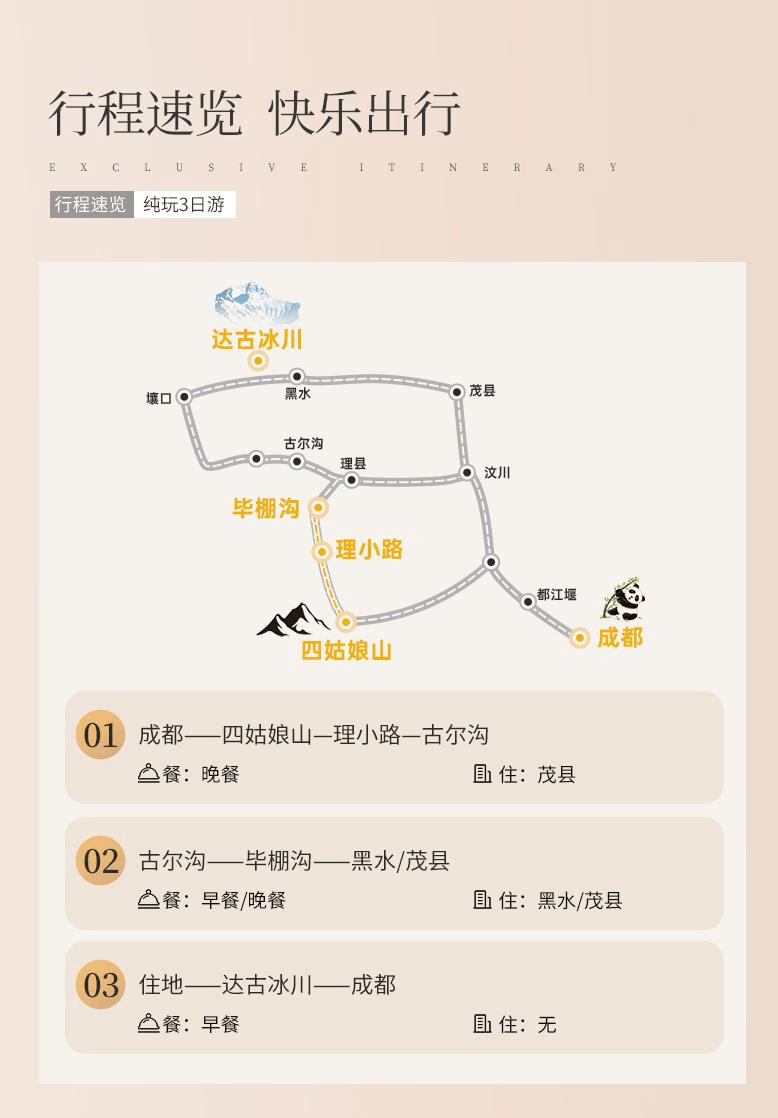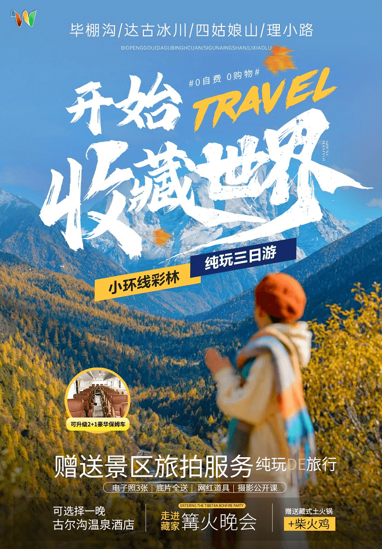 5:環(huán)線景點(diǎn):畢棚溝、達(dá)古冰川、四姑娘山全程錯(cuò)峰游覽;