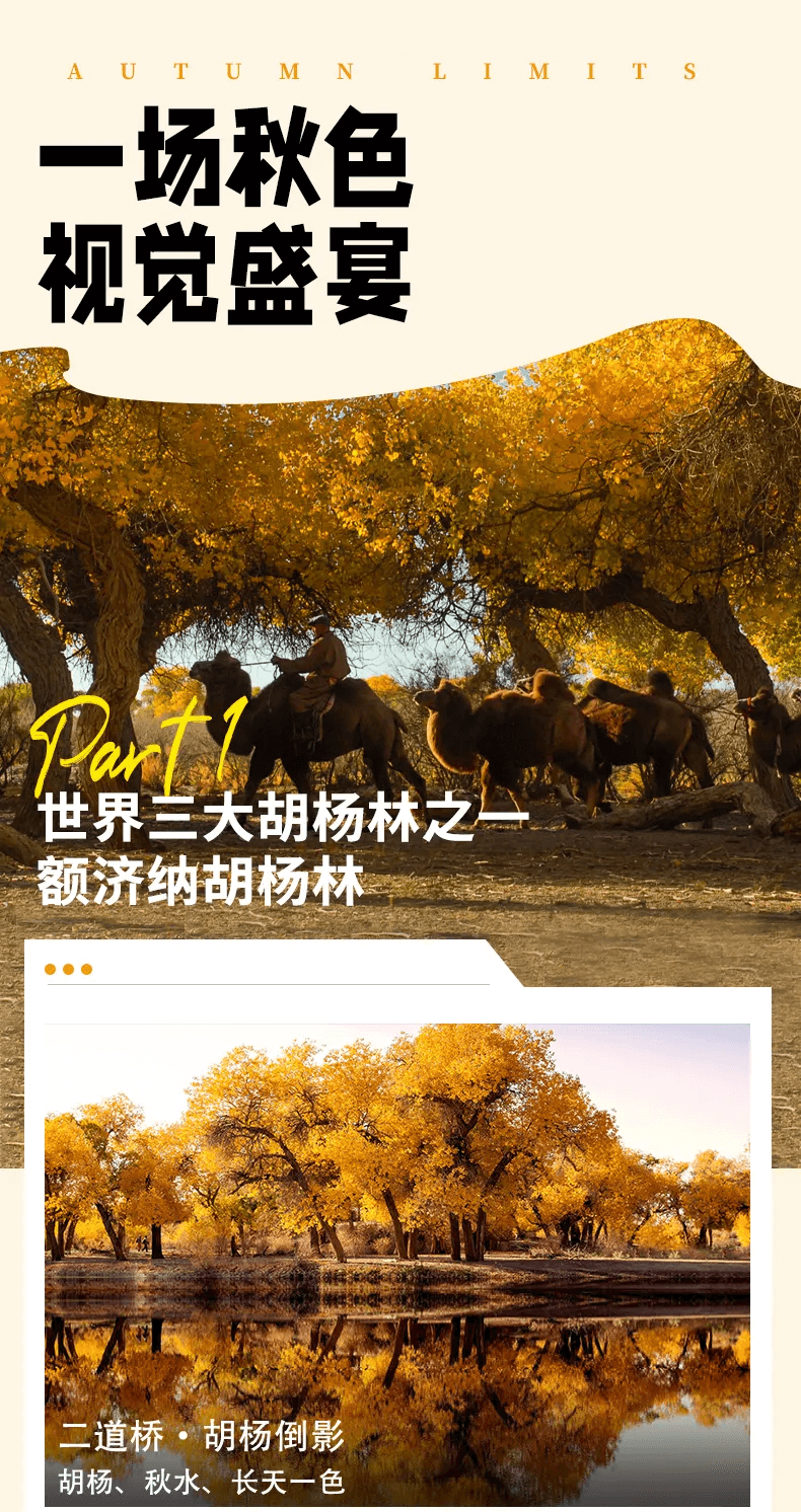 2.我們為各位購買的是額濟納胡楊林通票,包含景點:陶來林、戀影林、二道橋塔王府、倒影林、三道橋紅柳海觀景平臺、四道橋英雄林、五道橋胡楊民俗風情園、七道橋夢境林、太陽湖、八道橋巴丹吉林沙漠北緣,大家在自由活動期間可以隨意暢玩!