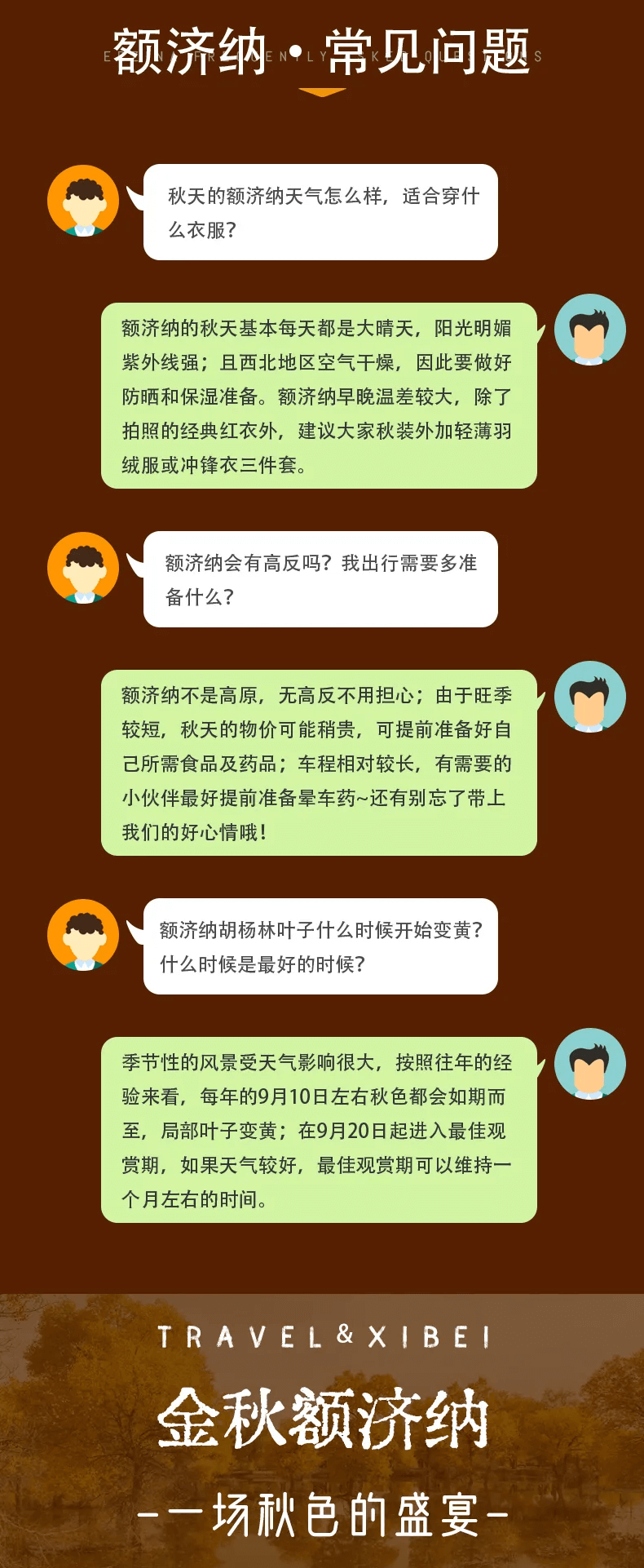 1、額濟納屬于典型的荒漠干旱地區,秋季溫差大,因此需要準備防沙衣物以及運動鞋,準備紡防曬霜,遮陽帽,太陽鏡等物品,也不要忘記隨身攜帶身份證等相關證件;