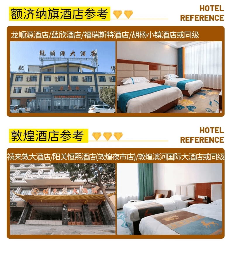 額濟納旗:2鉆酒店標間2晚參考龍順假日酒店/藍欣酒店/胡楊小鎮酒店/眾鑫賓館/福瑞斯特賓館