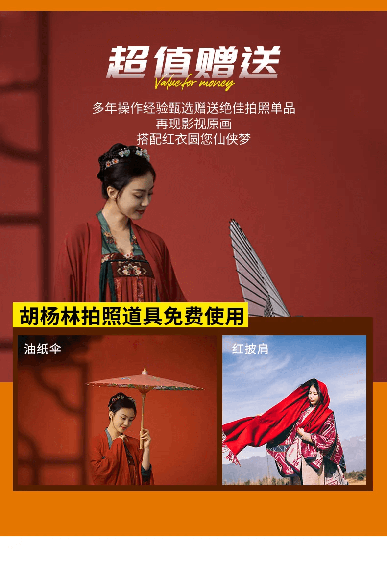超值贈送:多年拍照甄選,隨團贈送胡楊林拍照佳品,油紙傘+紅圍巾!