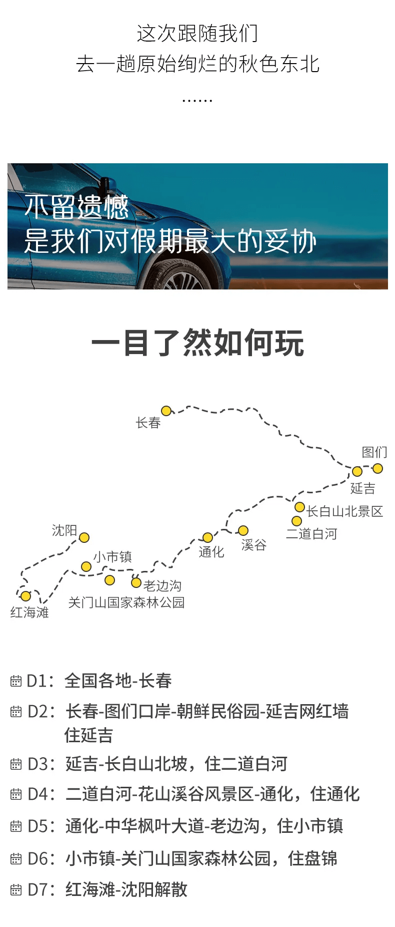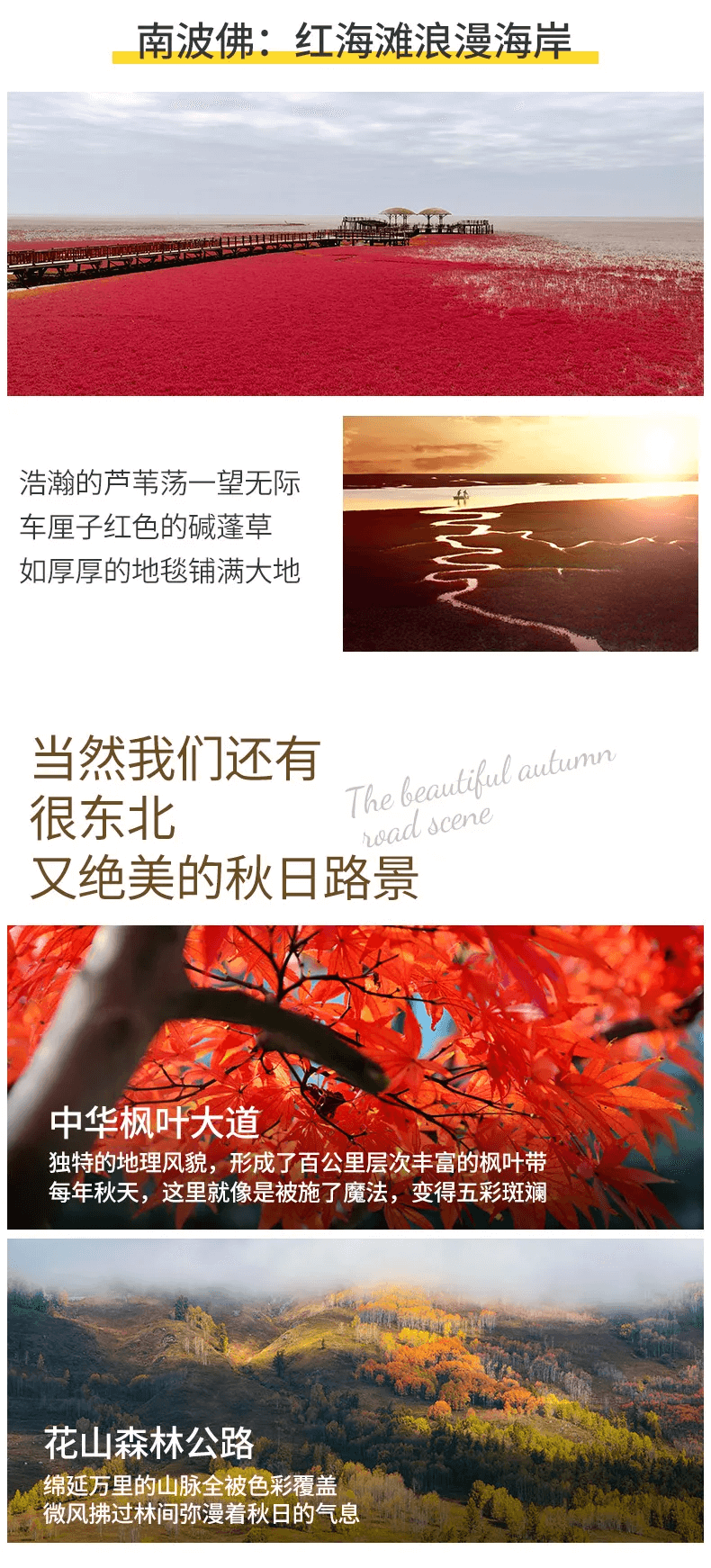 最美秋色:遼東關(guān)門圣地賞秋,網(wǎng)紅盤錦紅海灘,穿越中華楓葉大道,小眾秘境老邊溝,漫步秋日延吉。 精華美景:長白山世界地質(zhì)公園,近距離接觸東北第一圣山。 舒適旅程:2-8人精品小團,保證10%空座率,老司機開路,保障旅途舒適舒心;