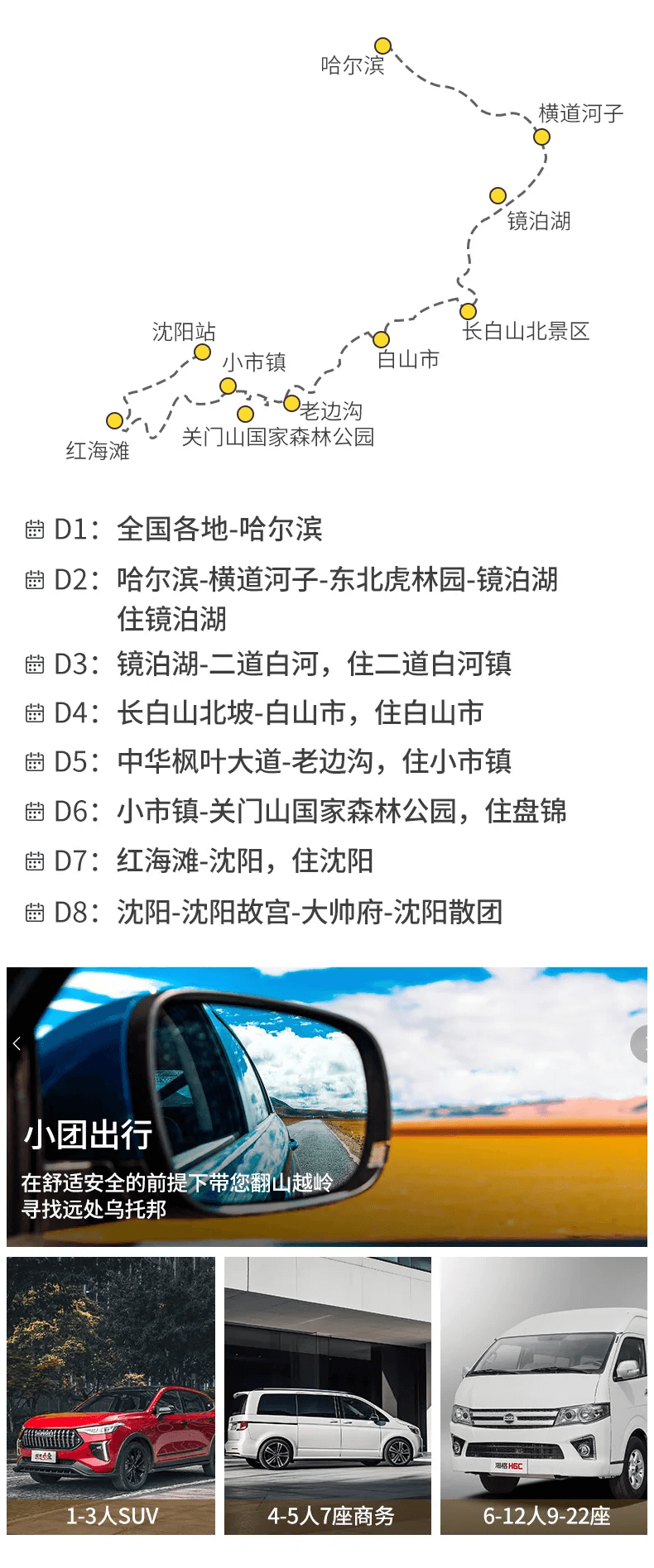 最美秋色:遼東關門圣地賞秋,網紅盤錦紅海灘,穿越中華楓葉大道,小眾秘境老邊溝,,觀鏡泊湖吊水樓瀑布,東北虎繁育基地。 精華美景:長白山世界地質公園,近距離接觸東北第一圣山。
