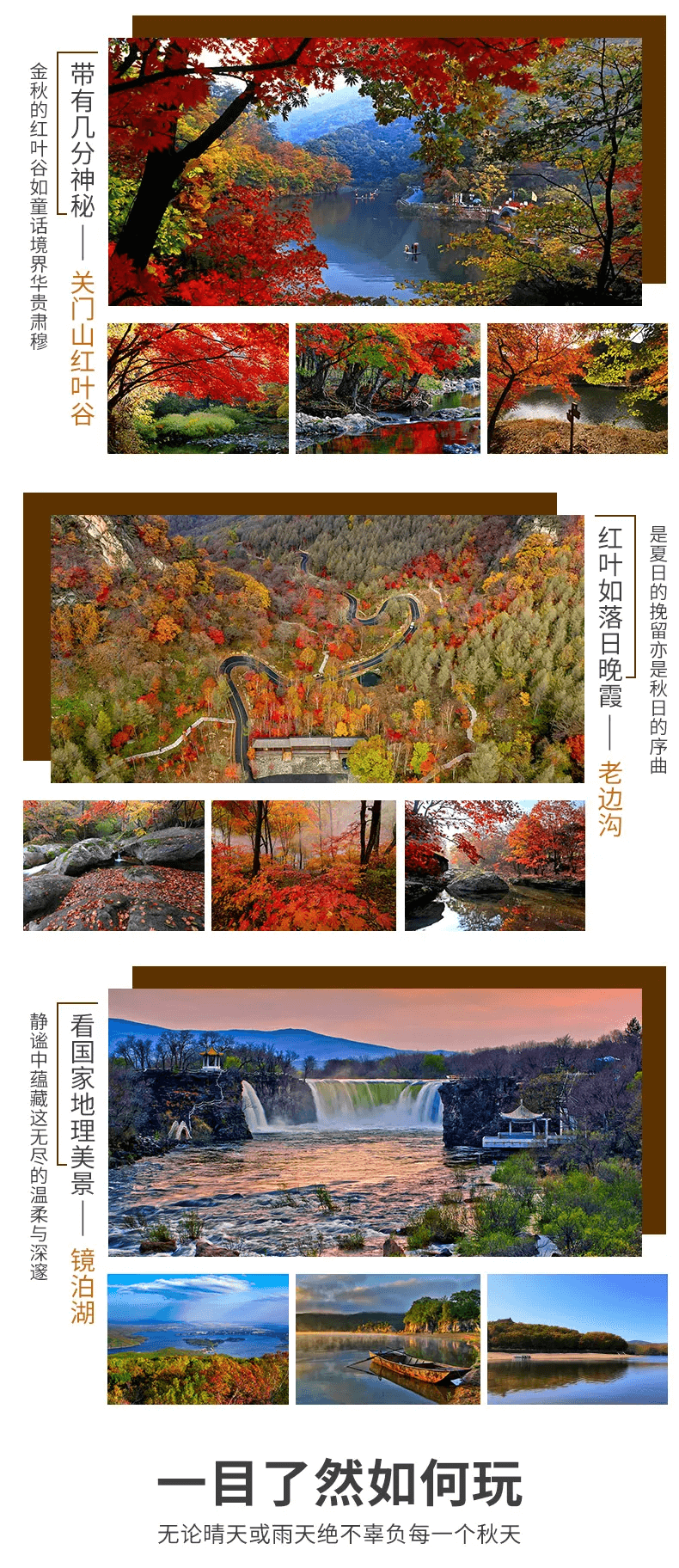 最美秋色:遼東關門圣地賞秋,網紅盤錦紅海灘,穿越中華楓葉大道,小眾秘境老邊溝,,觀鏡泊湖吊水樓瀑布,東北虎繁育基地。
