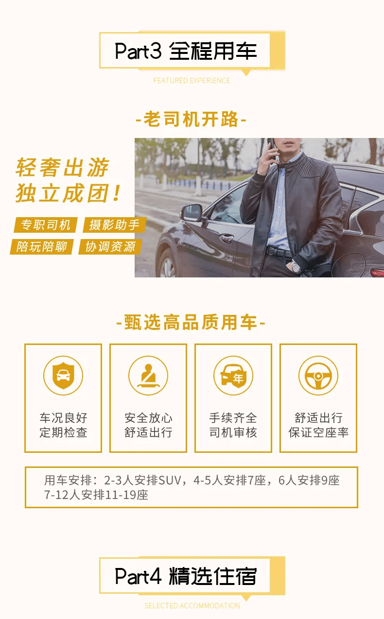 5.司導(dǎo):司機(jī)兼管家,幫助大家購買門票,給團(tuán)友游玩建議,無法進(jìn)入景區(qū)和提供專業(yè)講解等服務(wù),敬請諒解;