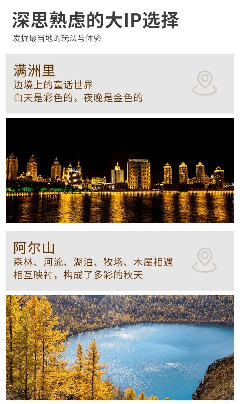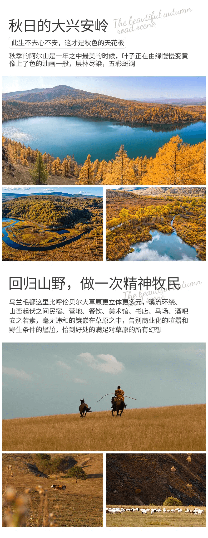 2、阿爾山景區較大,我們甄選精華景點走完,根據實際情況可能會有先后順序調換,行程時間僅供參考;