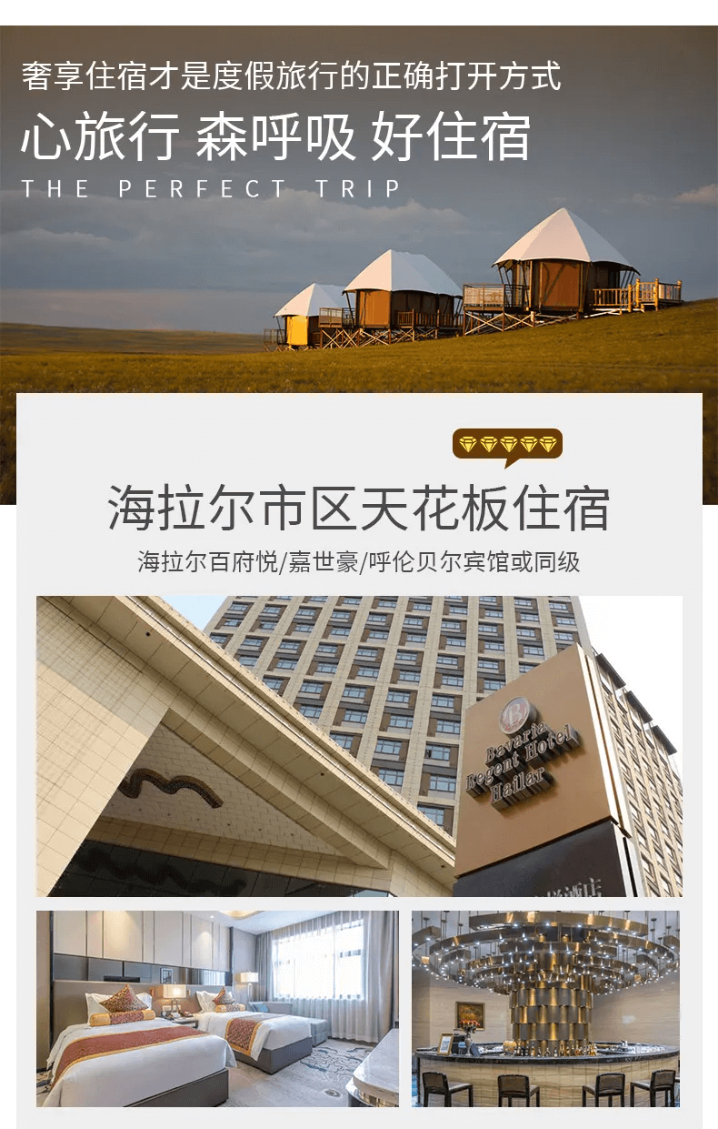 海拉爾百府悅/嘉世豪/呼倫貝爾賓館或同級;