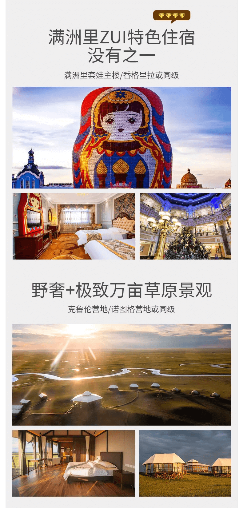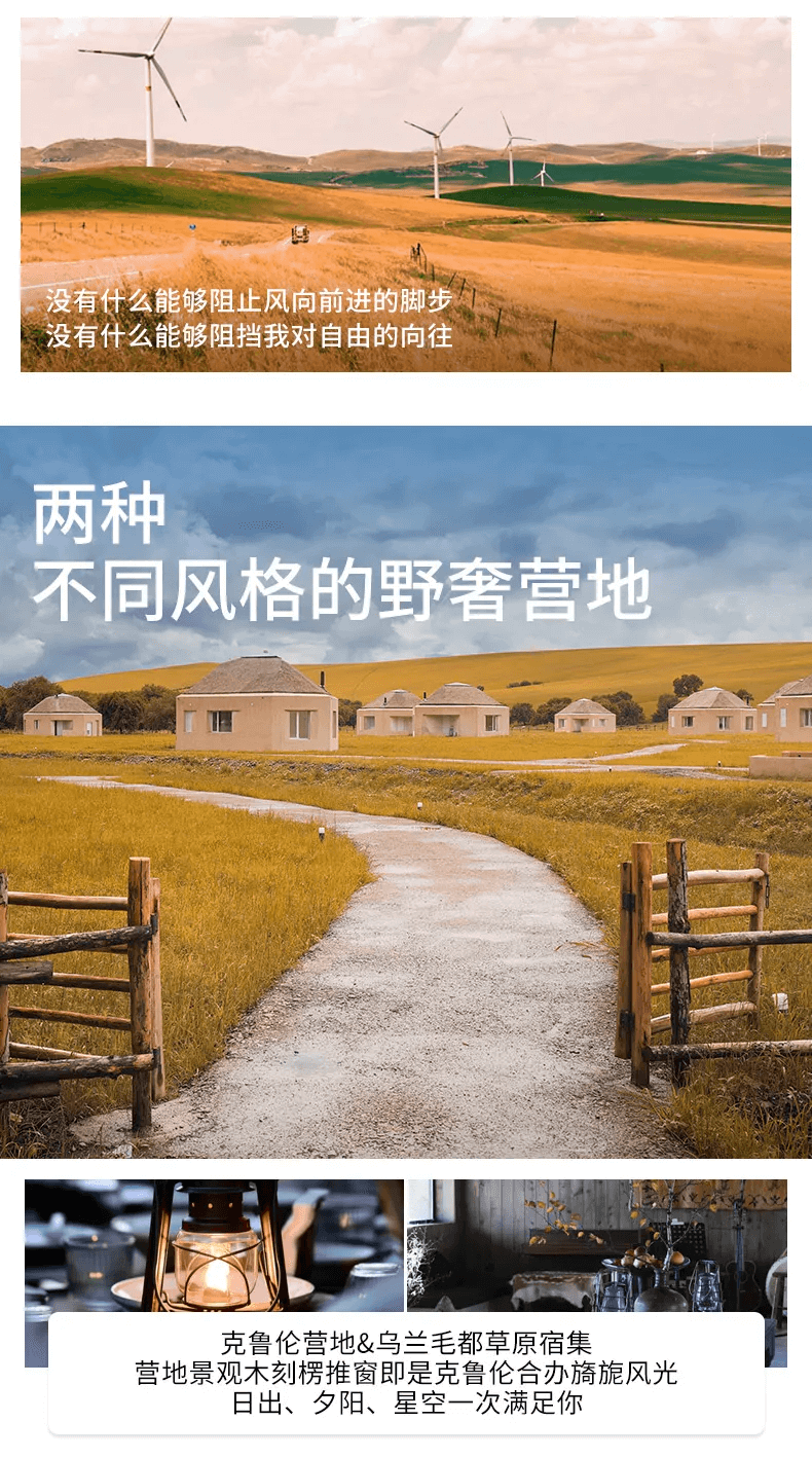 小眾玩法:野奢營地深度體驗、馬背騎行、草原宿集放空; 精華美景:蒙古風情&草原腹地穿越、風車草原&白露阿爾山;