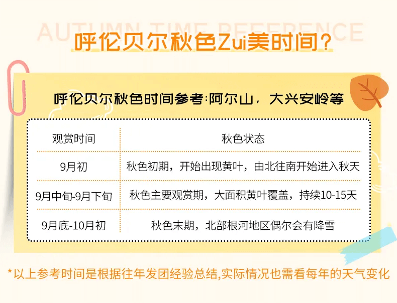 1.氣溫:秋季的呼倫貝爾早晚溫差很大,一般溫度會在5-15度。