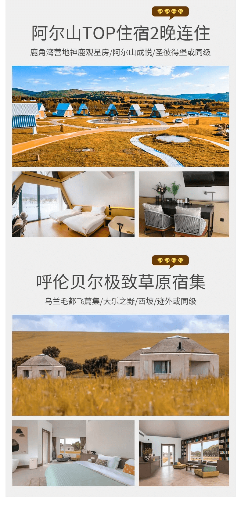2晚連住鹿角灣營地神鹿觀星房/阿爾山成悅/圣彼得堡或同級;