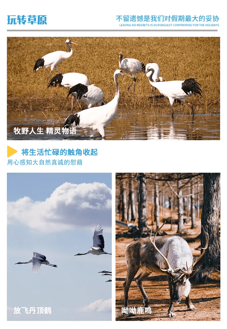 13:30 抵達中國最大的丹頂鶴保護基地【扎龍濕地景區】,這里也是世界上最大的丹頂鶴繁殖基地;扎龍濕地為亞洲第一、世界第四,也是世界最大的蘆葦濕地。金秋時節,潔白的丹頂鶴群在蘆葦的映襯下愈發顯的神駿。如果我們足夠幸運,還能趕上工作人員喂食鶴群展翅翱翔,場面不禁讓人贊嘆。