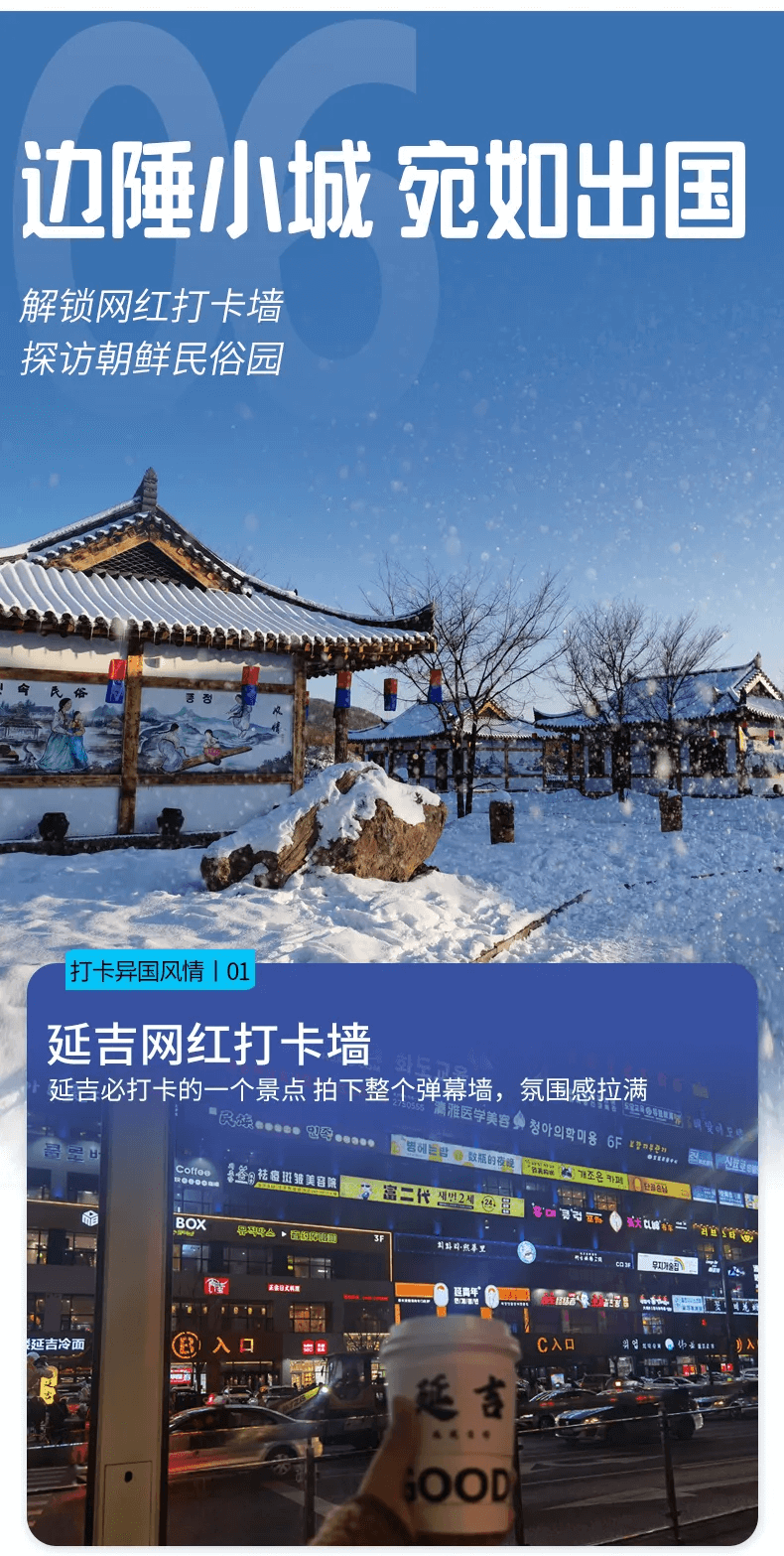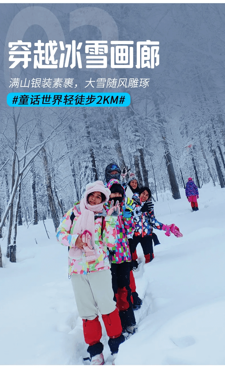 網(wǎng)紅玩法:冰雪畫廊輕徒步、延吉網(wǎng)紅彈幕墻、朝鮮民俗園、雪地溫泉、潑水成冰、雪上飛碟、雪地篝火蹦野迪、雪鄉(xiāng)滑雪3小時;
