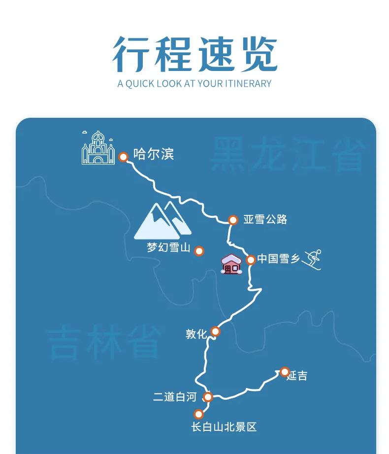 精華美景:童話雪鄉(xiāng)、大美長白山、亞雪公路;