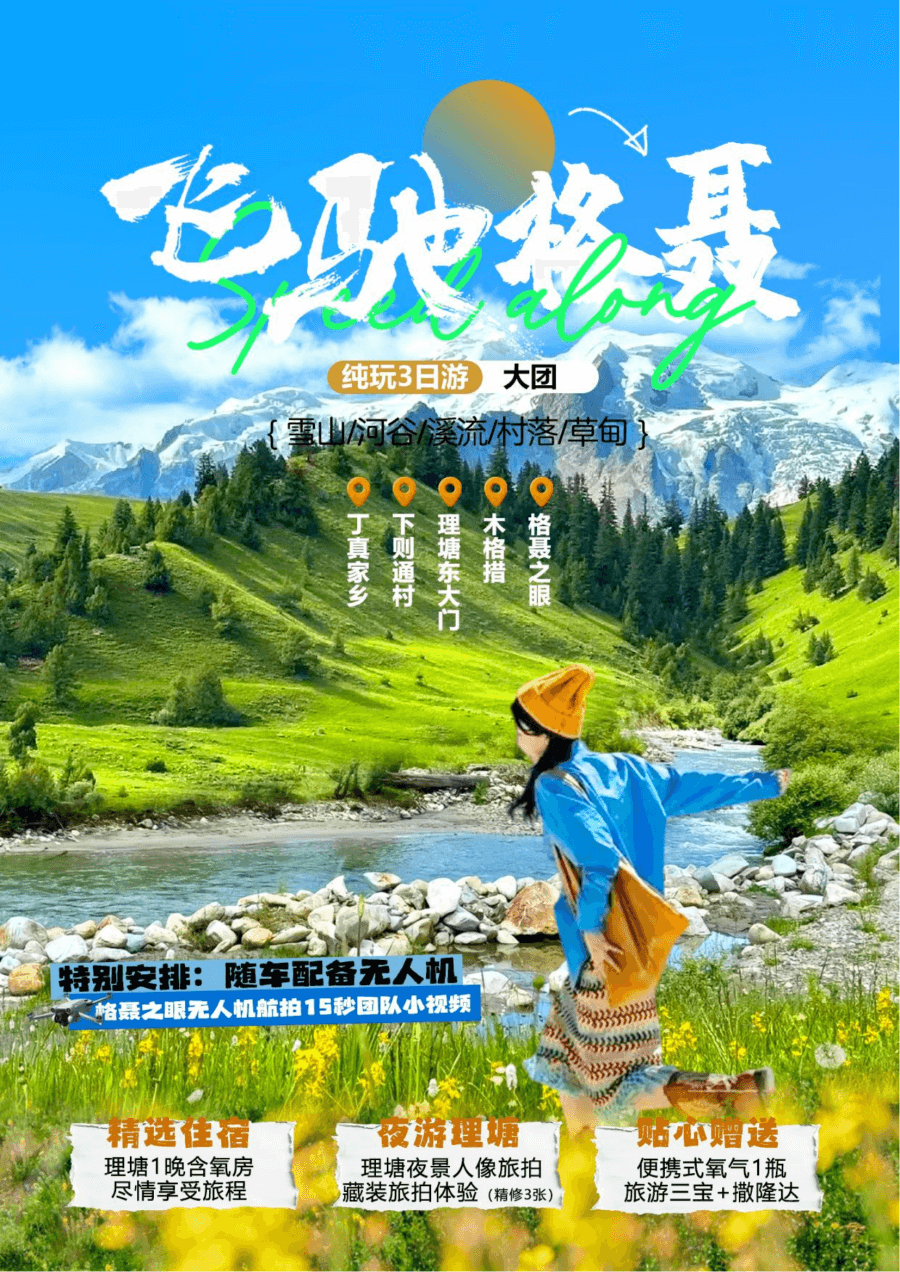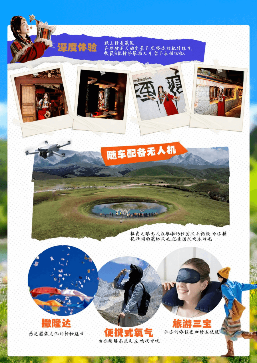 超值贈送 便攜式氧氣,旅游三寶,格聶之眼無人機航拍 15 秒團隊小視頻,理塘夜景人像旅拍 藏裝旅 拍體驗(精修 3 張)