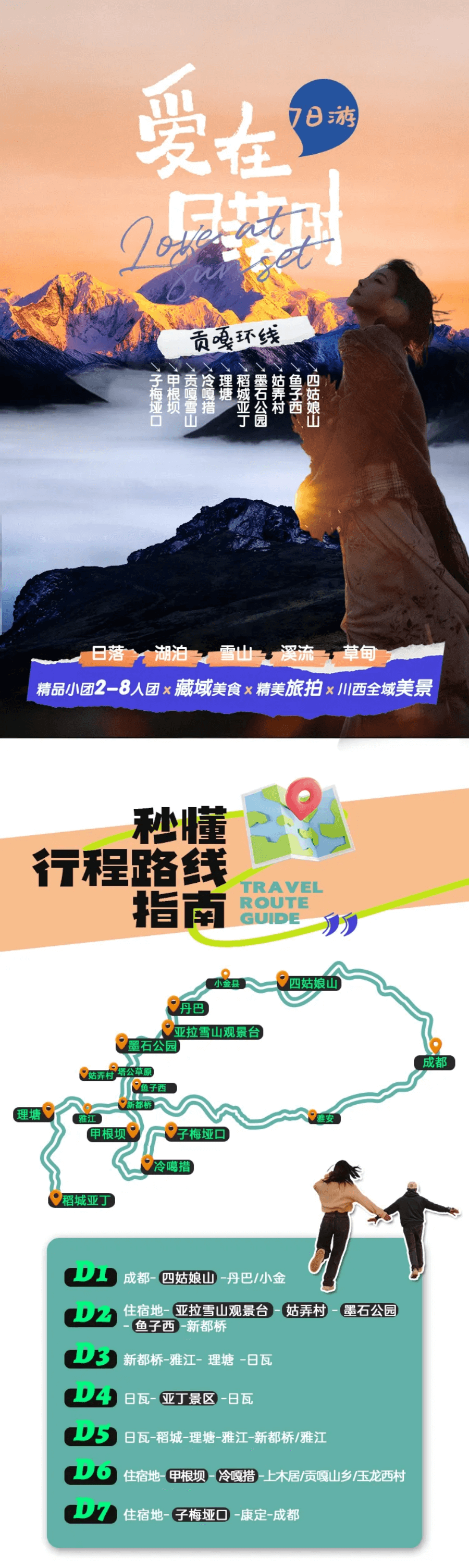 游覽完畢以后繼續(xù)前往【姑弄村】感受川西草地溪流牛羊風景(游覽時間不低于10分鐘),最后前往【魚子西】上山前往觀景(游覽時間不低于20分鐘),可有機會觀賞日落晚霞之美。