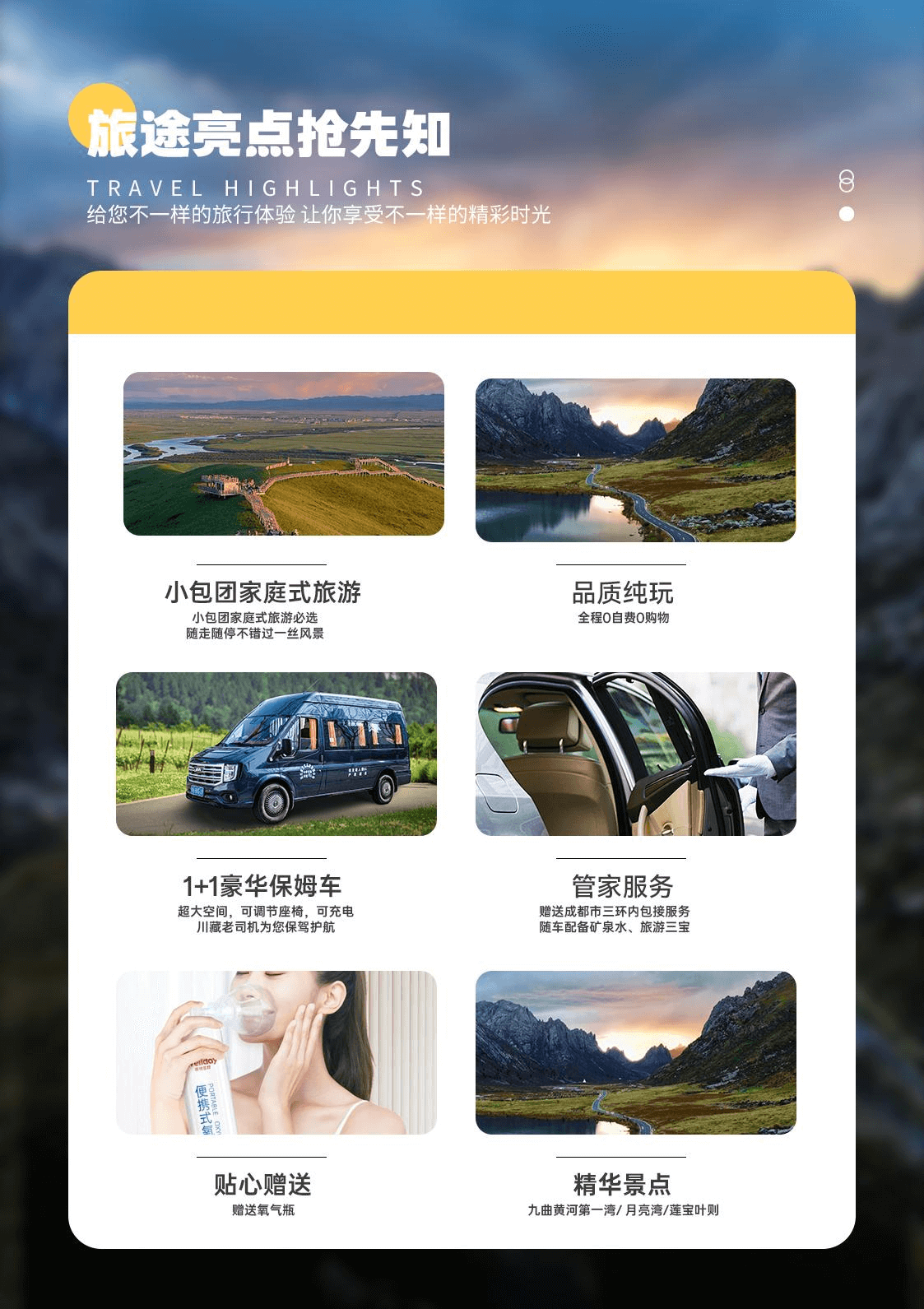 注:此行程免費贈送成都市三環內包接服務,接人師傅會在出團前一天晚 6 點——9 點與您聯系,請保持手機暢通,注意接聽電話。?