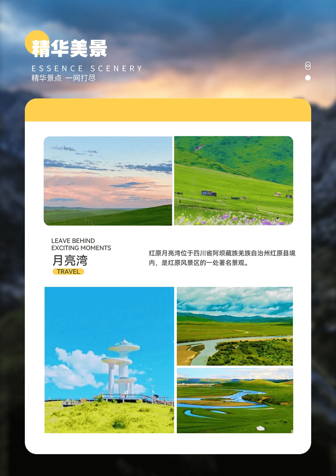 08:00—12:00 出發前往游覽紅原 4A 級風景區——月亮灣 (門票+觀光車旅行社政策價 38 元,費用自理)?