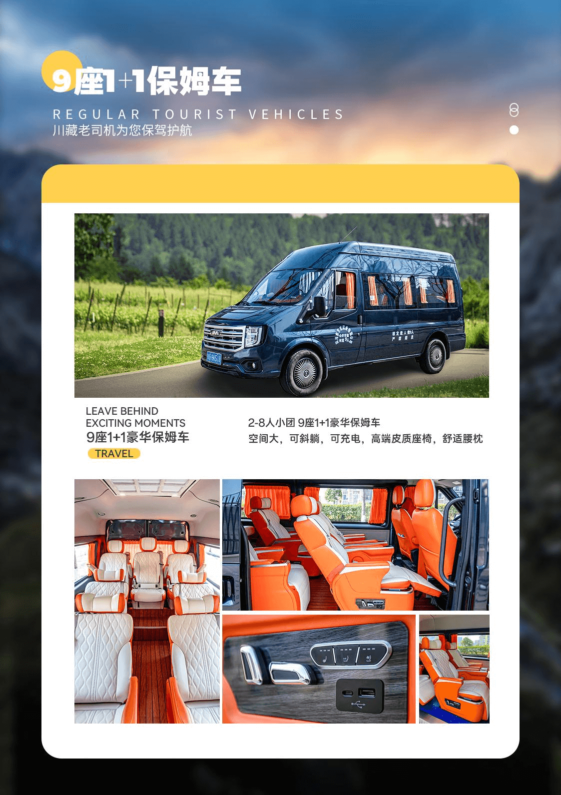 1:精選 9 座正規旅游保姆車,川藏老司機為您保駕護航,0 自費 0 購物