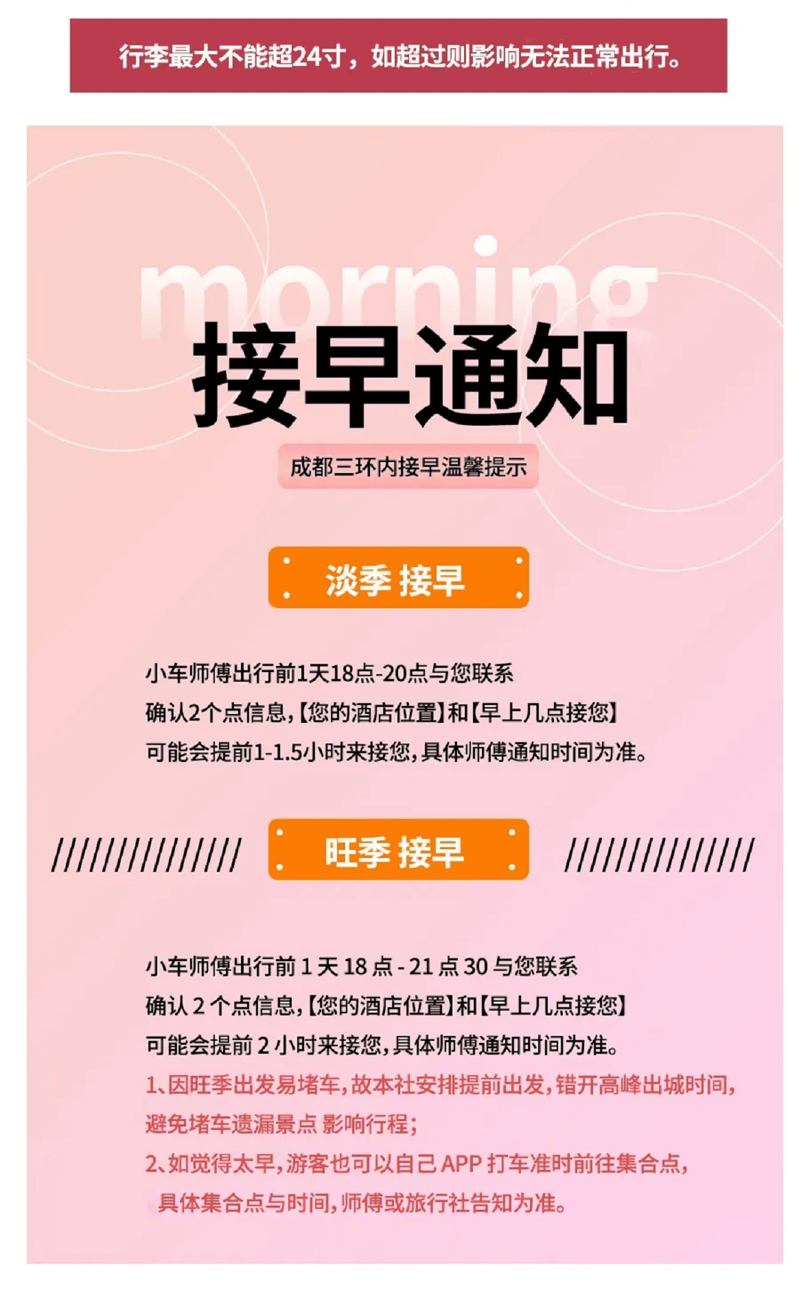 (4)成都三環內接早服務(三環外不接早,游客需趕到集合點上車)