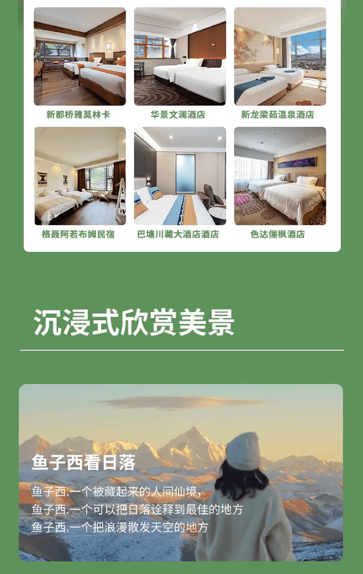 折多山與魚子西海拔較高,避免劇烈運動,可提前備氧氣瓶。若出現頭痛、呼吸急促,立即停止活動并吸氧。