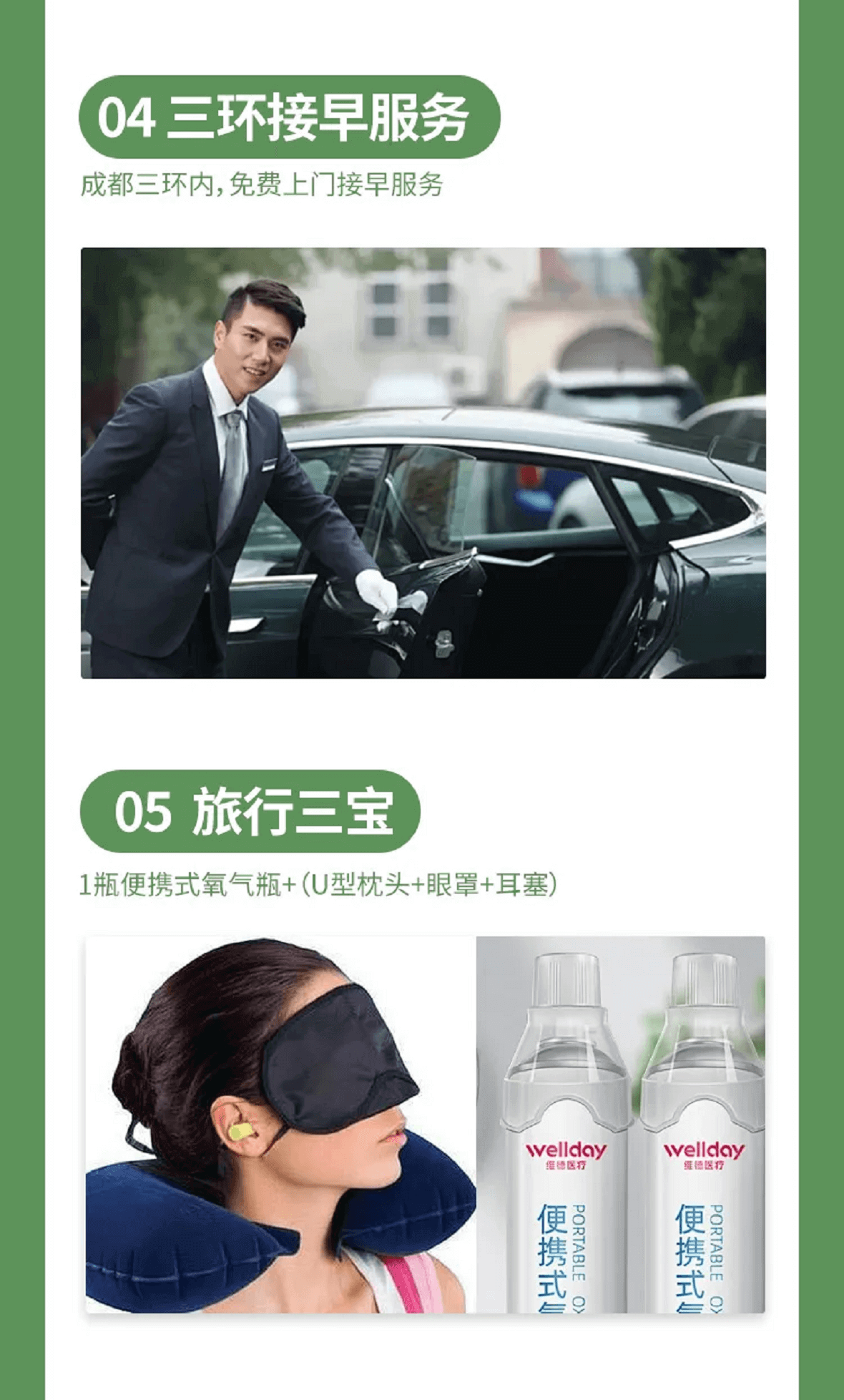 (3)贈送隨車氧氣1瓶+旅行三寶(頭枕、耳塞、眼罩)1人1個