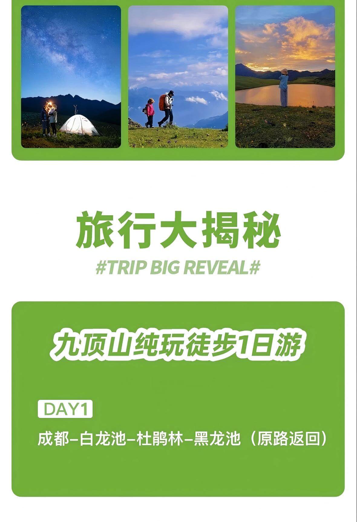 早上指定地點集合出發(具體集合信息短信通知為準),大家務必準時不要遲到喲,經都汶高速到南新鎮,預計11點到達景區,中午自帶路餐(徒步用餐),徒步上山約3小時,全程上坡穿越原始森林,下山原路返回,不要私自離隊走岔路,預計3點左右下山,請遵守下山時間,不管走到哪里準時下山,6點準時停車場集合返回,結束一天的旅程,預計到達成都9-10點,到達成都后就近地鐵口一個地點統一散團。