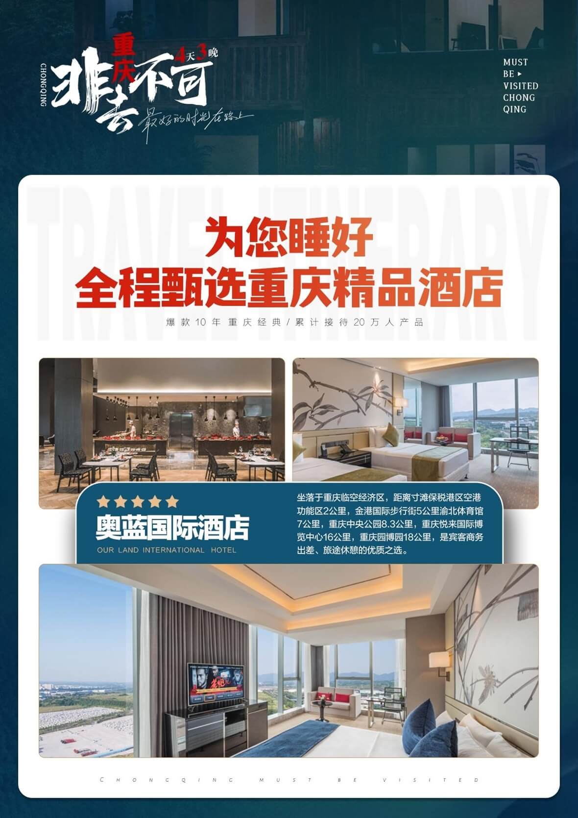 重慶五星參考酒店:重慶華辰國(guó)際大酒店、尚高麗呈酒店、臨空智選假日酒店、圣名大酒店、禧滿鴻福酒店、慧苑或同級(jí)酒店