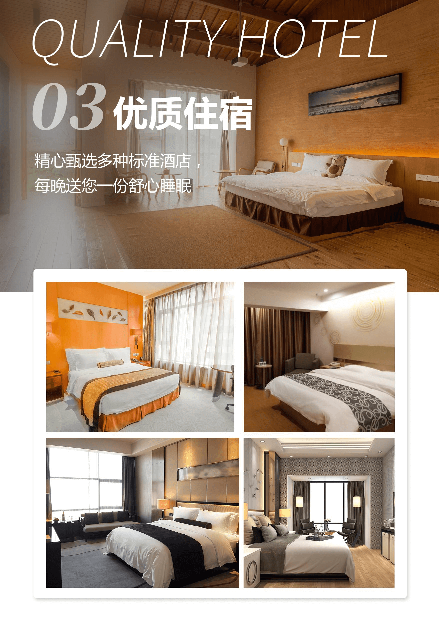 10、行程內的時間僅供參考,具體以實際行車速度及相關路況及游客游覽快慢為準;行程先后順序在實際游覽中可能會調整,但景點不減少,公交交通及景區的配套設施設備的容貌及衛生狀況不屬于旅行社的服務質量范疇,如有意見或建議可向相關主管部門反映。