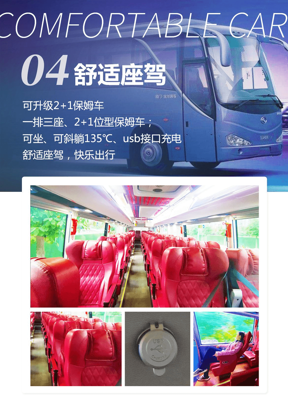 2:可加錢升級頭等艙保姆車 2+1 排座+135 度可躺座椅+車載 USB 充電,讓旅行更舒心