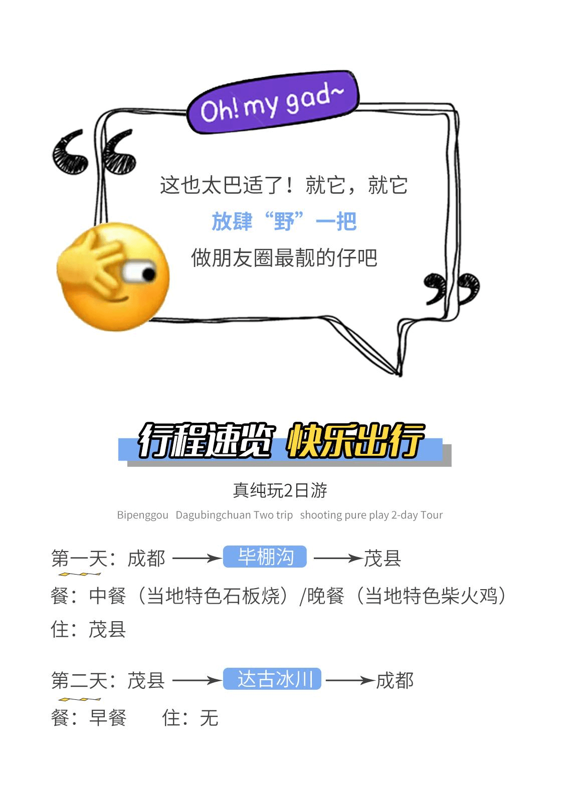 門票:畢棚溝、達古冰川首道大門票(畢棚溝優惠退 10,免票退 20。達古冰川優惠不退,免票退 20)