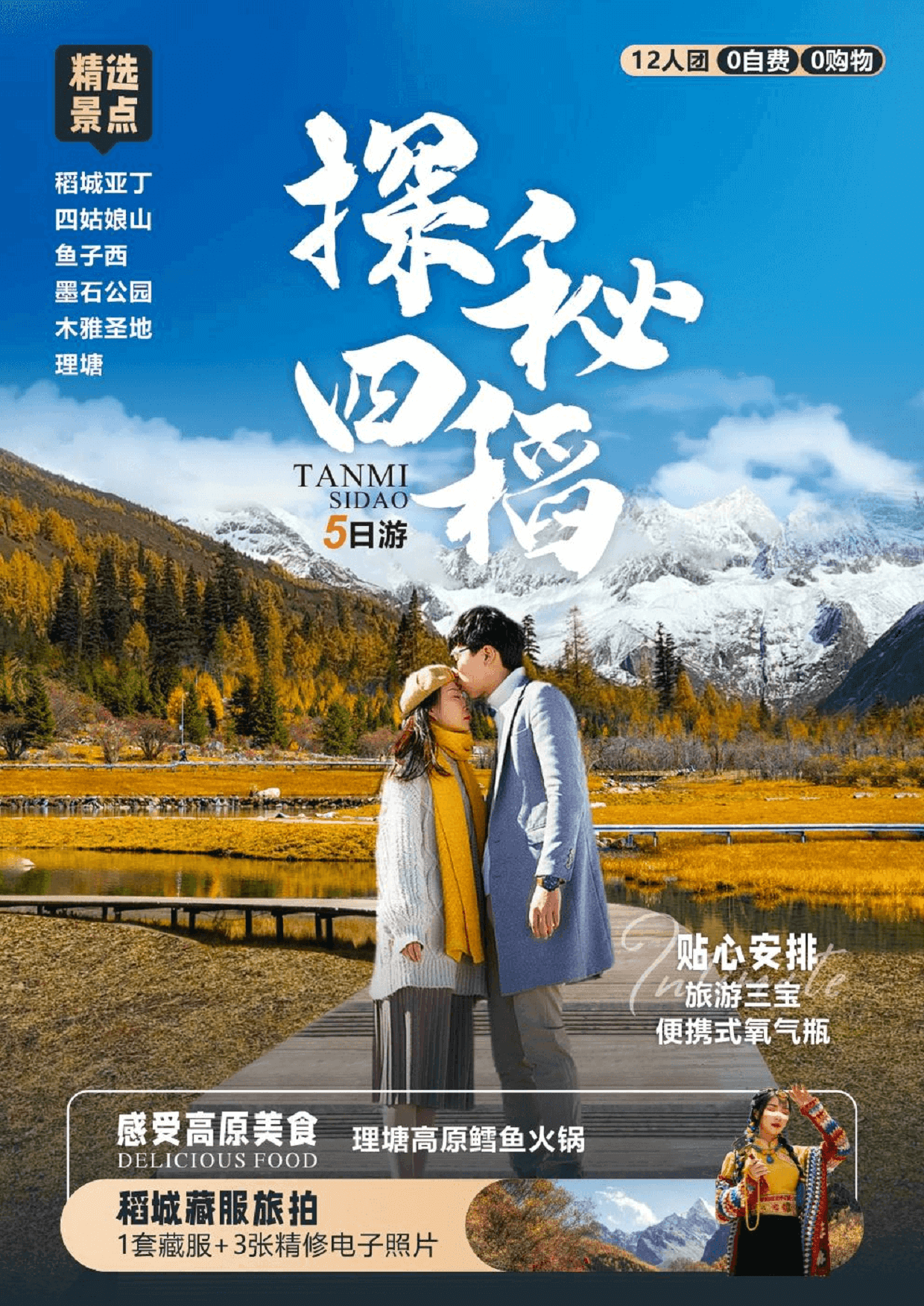 4.因亞丁景區內無法提供用餐,景區內中餐請自理,客人可提前自備干糧。
