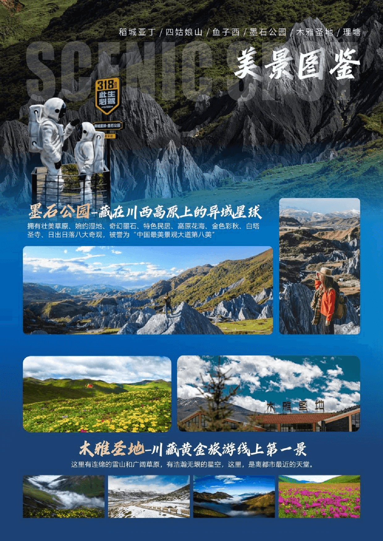 中午:經雅康高速一路向西,經過二郎山隧道,后經情歌故鄉【康定】海拔 2500 米,車窗欣賞景色如畫的小橋、流水、人家、藏式民居風光,感受濃郁高原藏家風情。后前往贈送景點:【木雅圣地】觀光車 60 元/人自理:(此景點為贈送景點,如因天氣、堵車、交通管制等特殊原因不能前往,費用不退,且不做等價置換)。木雅圣地景區坐落于情歌故鄉康定市,距離攝影家的天堂——新都橋鎮 30 公里,景區以開闊的草原牧場、奇幻的云海佛光、壯美的貢嘎雪山和獨特的木雅文化為特色,是“橫跨仙界人間”必經之地。在景區不僅可以領略“花海尋蹤”、“鏡面觀妝”、“梵音送?!?、“天界牧歌”、“群峰為屏” 等高原風光。后乘觀光車出景區。后自愿自費前往【魚子西】(自理魚子西中轉費 60 元/人、節假日 100 元/人,清潔費 30 元/人,根據實際情況而定,如因當地政策、路況、堵車、天氣、限流等不可抗力因素導致無法前往,景點不做置換不退費),溫馨提示:前往魚子西道路存在安全風險,未通過驗收,禁止任何旅游車上山,若需要前往魚子西的游客須換乘當地人車輛上山(當地藏民司機素質參差不齊,車子均為當地面包車,如介意請慎重前往)