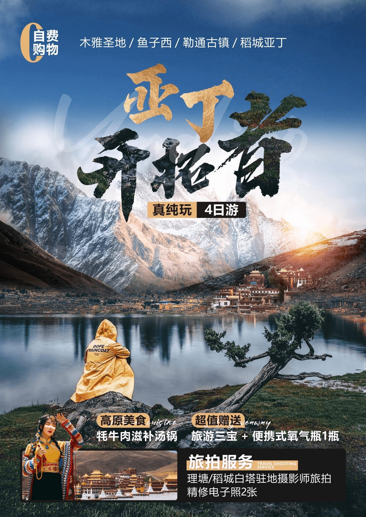 門票:含亞丁景區門票,勒通古鎮門票(贈),木雅圣地(贈);亞丁優惠:12.1-3.31 退 0 元,4.1-11.30 退 40 元;免票:12.1-3.31 退 40 元,4.1-11.30 退 80 元。【行程中景區門票費為旅行社協議價格,非掛牌價,優惠及免票按旅行社協議價格退款。】