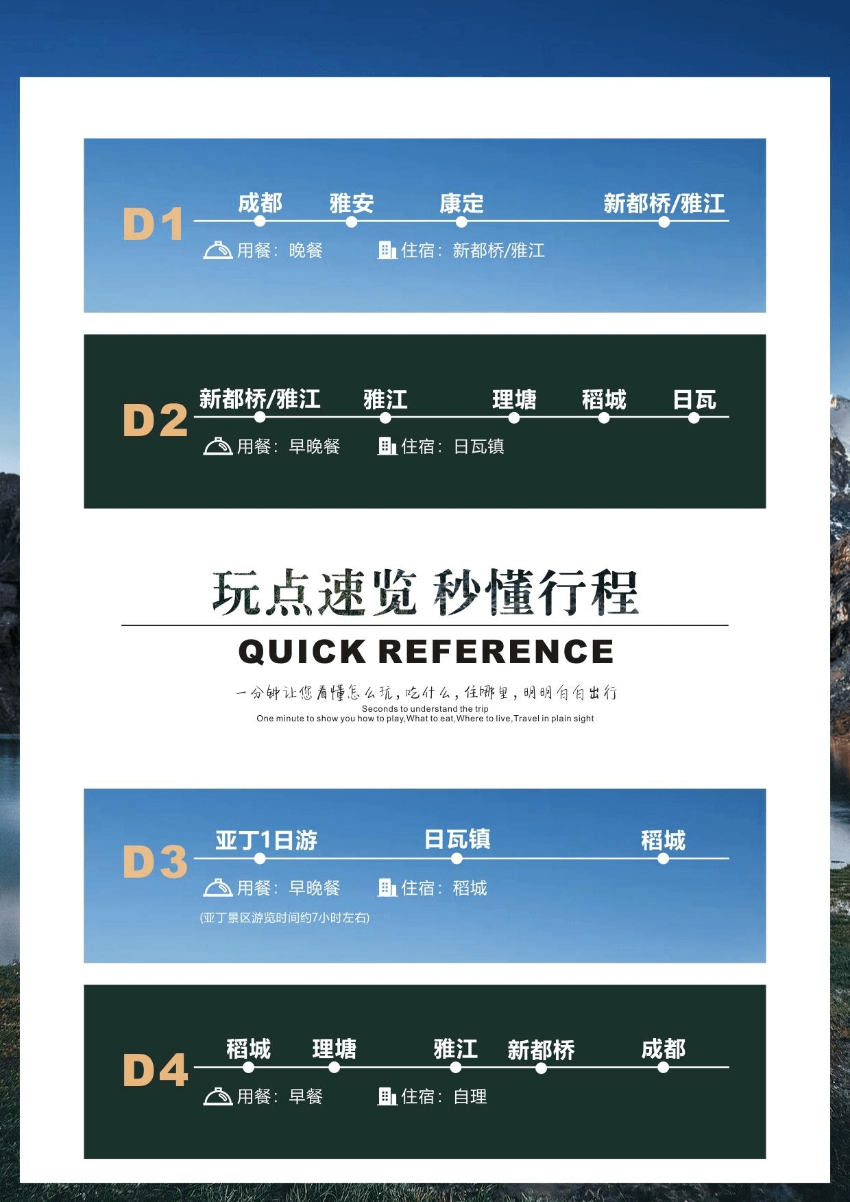 住宿:D1 晚:新都橋/雅江;D2 晚:日瓦鎮;D3 晚:稻城。品質酒店:一線準四;尊享酒店:當地準五;(全程不提供自然單間,產生單男單女,如不能拼房,則需另補房差)