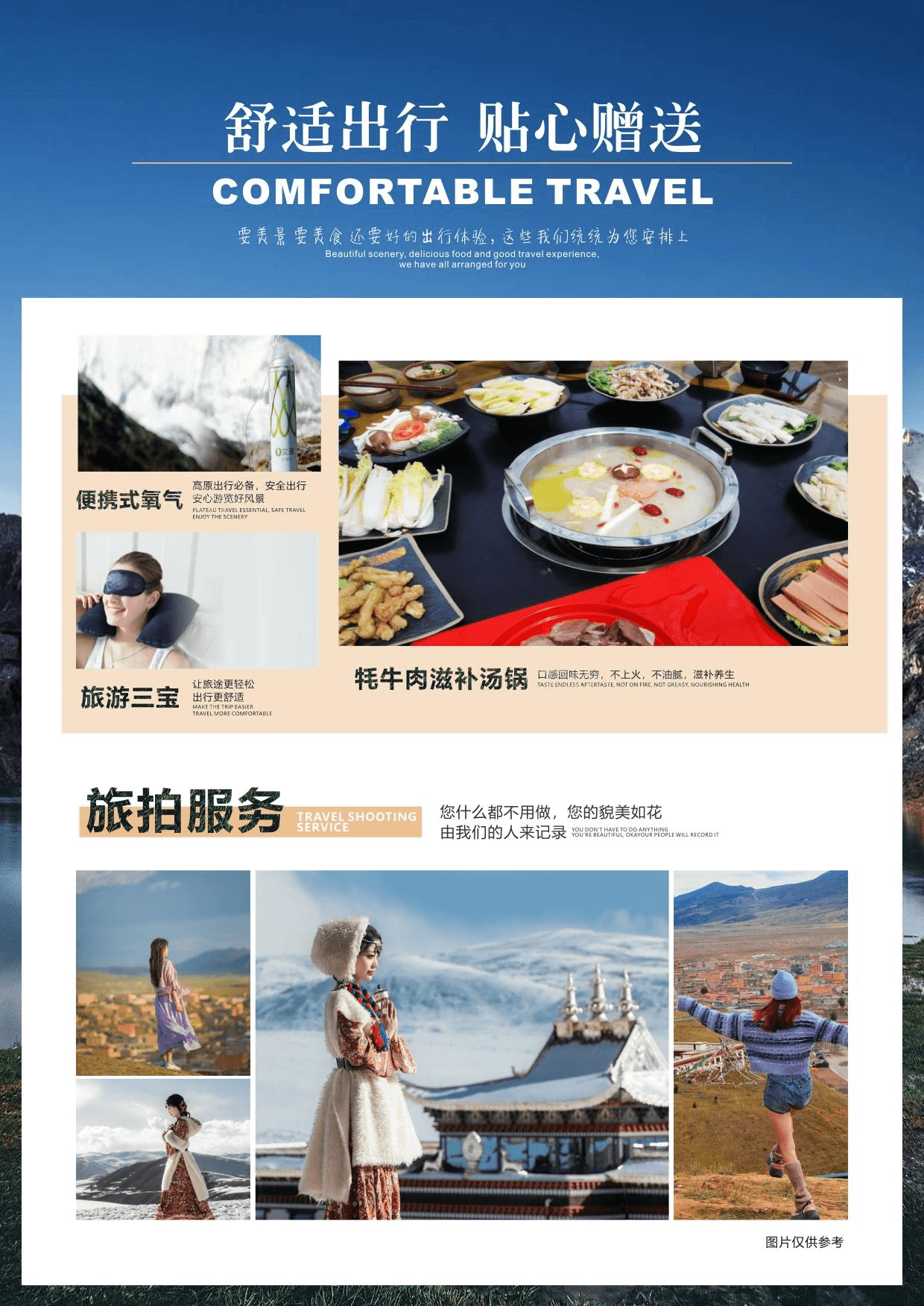 6、沿途系藏族地區,請游客尊重當地宗教信仰、民俗民風,不要以城市人的心態及標準去衡量當地條件。請寬容和接納旅途中接待條件的不足。遵守旅行社的安排,不能擅自離團,否則造成的損傷請游客自理。