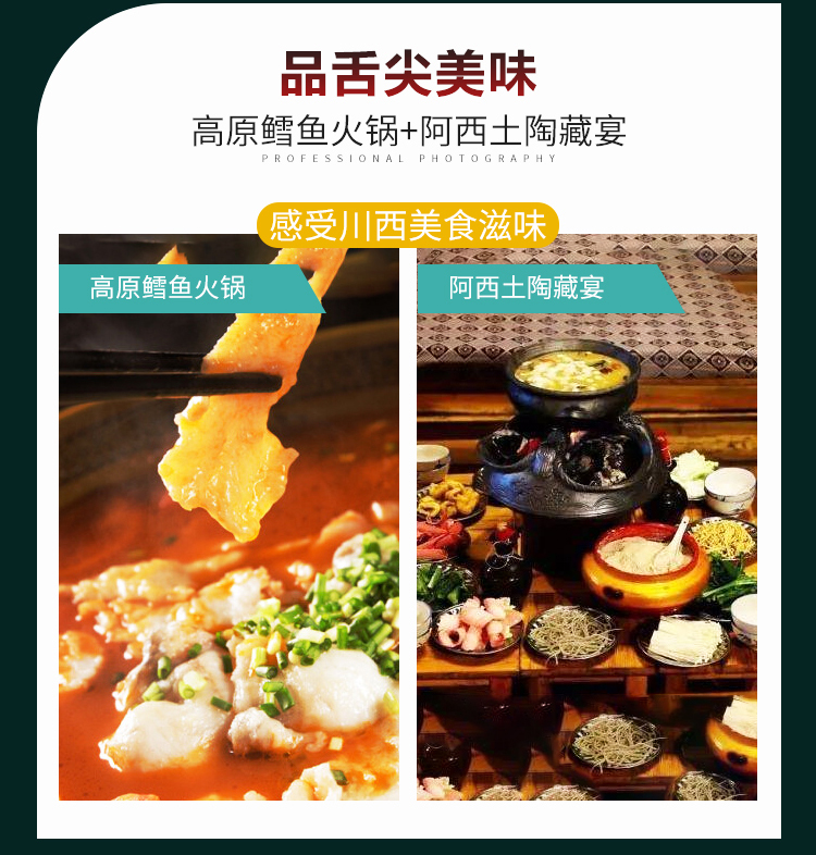 2:中餐贈送品嘗理塘高原鱈魚(贈送項目,如遇特殊情況無法贈送或自愿放棄等,不用不退費且不做置換)。
