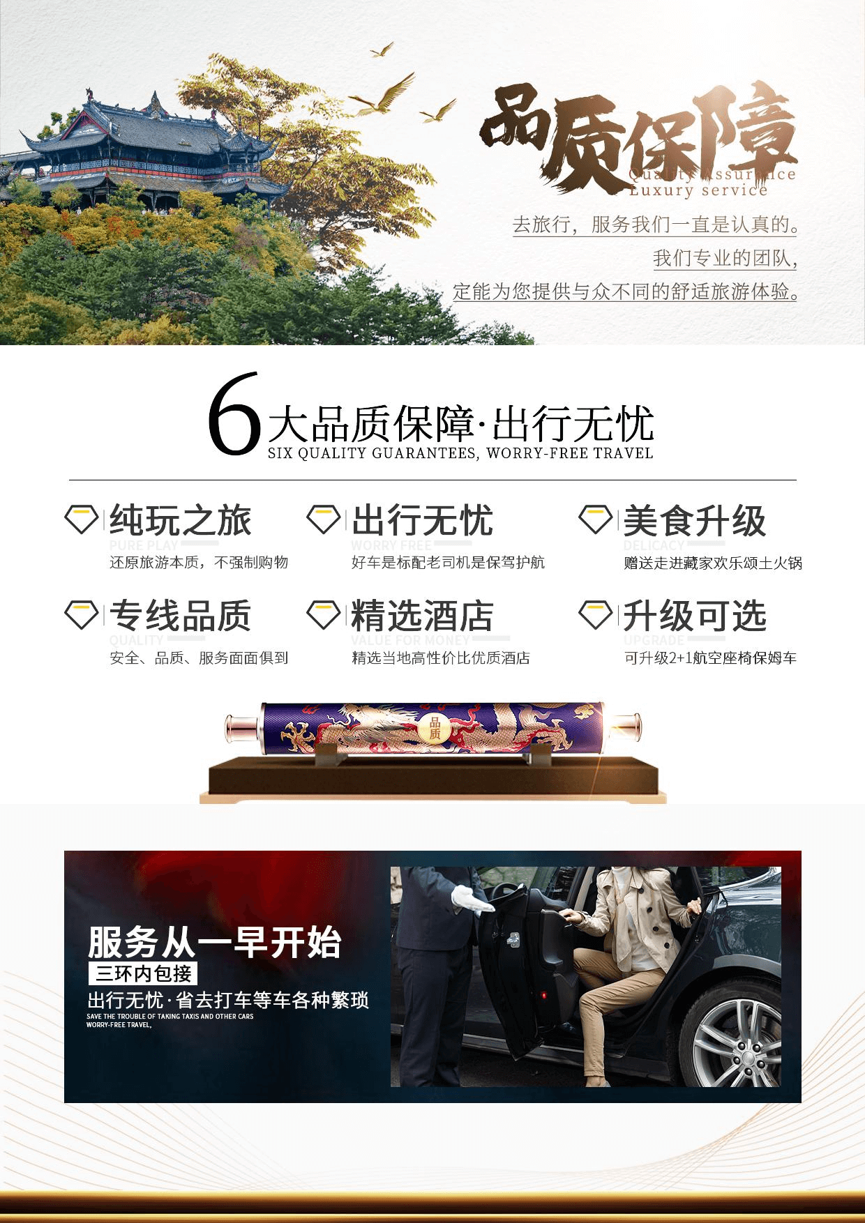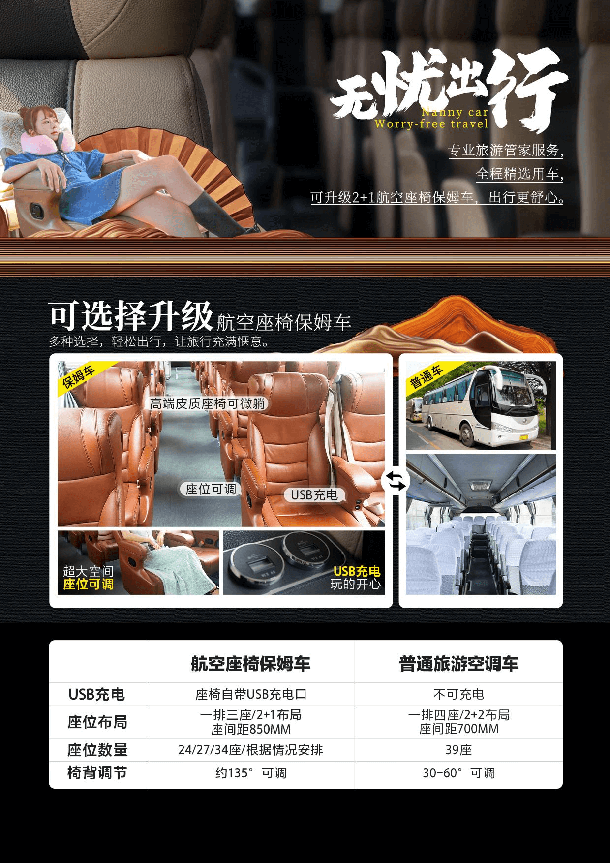3、無憂出行:專業(yè)旅游管家服務(wù),全程精選用車,可選擇升級(jí)2+1保姆車