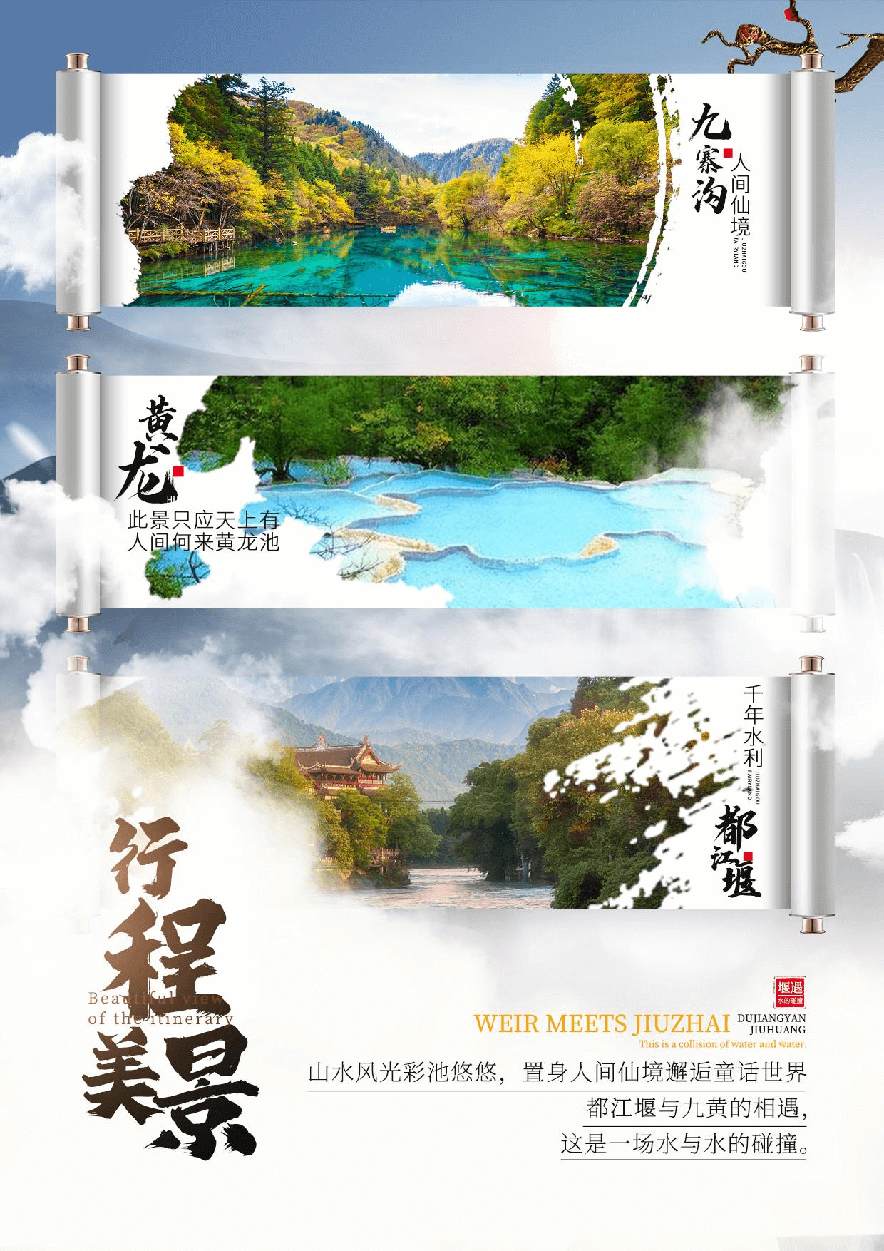 4、精選景點(diǎn):九寨溝、黃龍、都江堰知名景點(diǎn)打卡