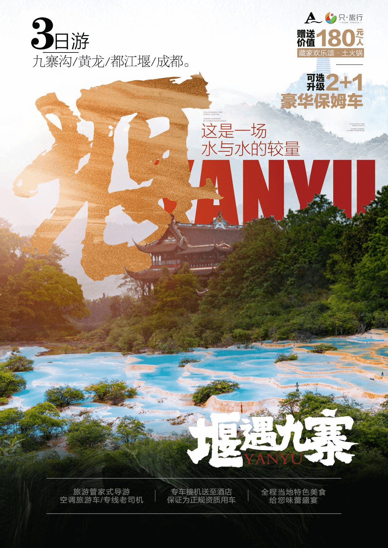 (2)如未選擇升級(jí)觀賞《九寨千古情》的游客,九寨景區(qū)游覽結(jié)束后由導(dǎo)游統(tǒng)一安排回送酒店休息。